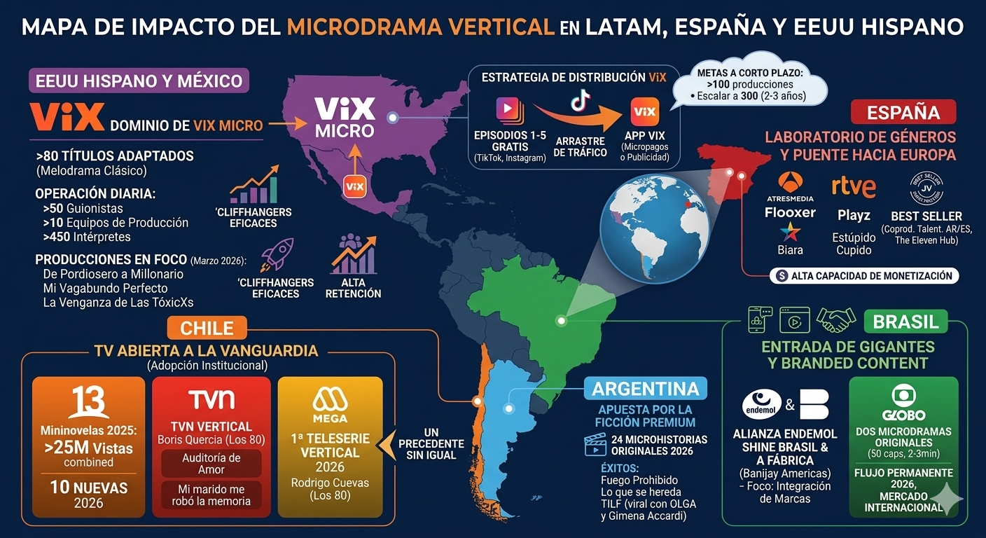 Across Ibero-America, what looked like a niche experiment three months ago has turned into a full-on corporate race. From TVN Chile to Globo in Brazil, from Atresmedia to RTVE—everyone wants a piece of the scroll. Microdramas aren’t the underdog anymore.