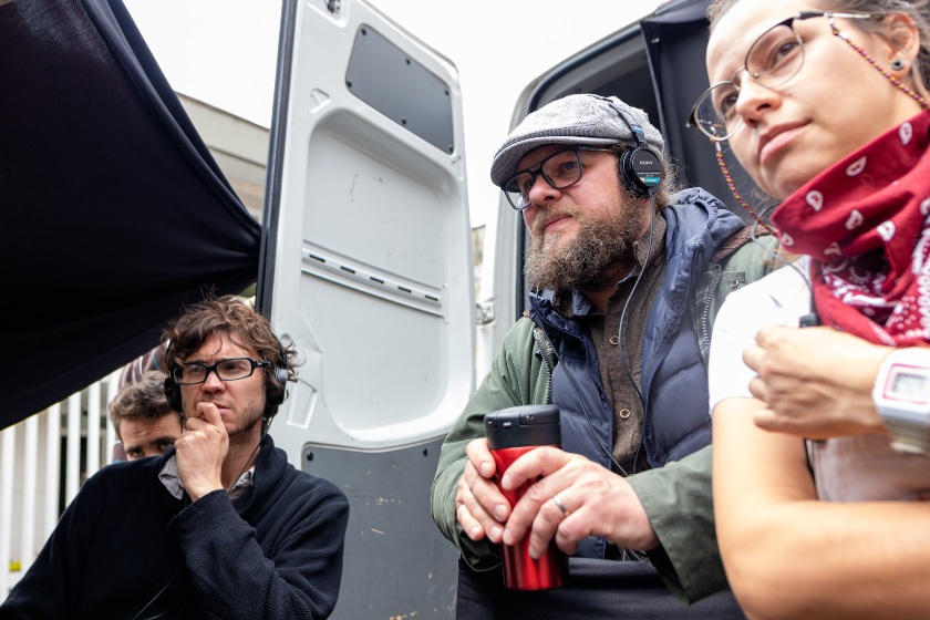 Mauricio Leiva Cock y Pablo Stoll en el rodaje de Ruido capital